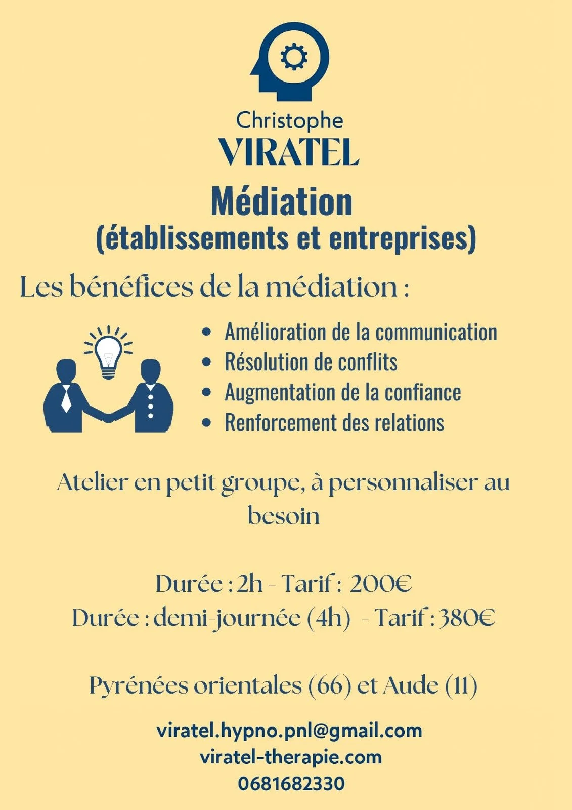J’ajoute à cette pratique mon expérience dans le domaine de la Communication Non Violente (CNV) ainsi que la Programmation Neuro Linguistique (PNL) afin d’enrichir la médiation et son résultat.